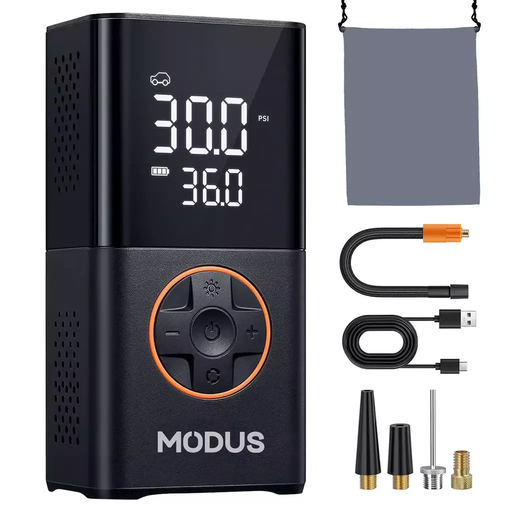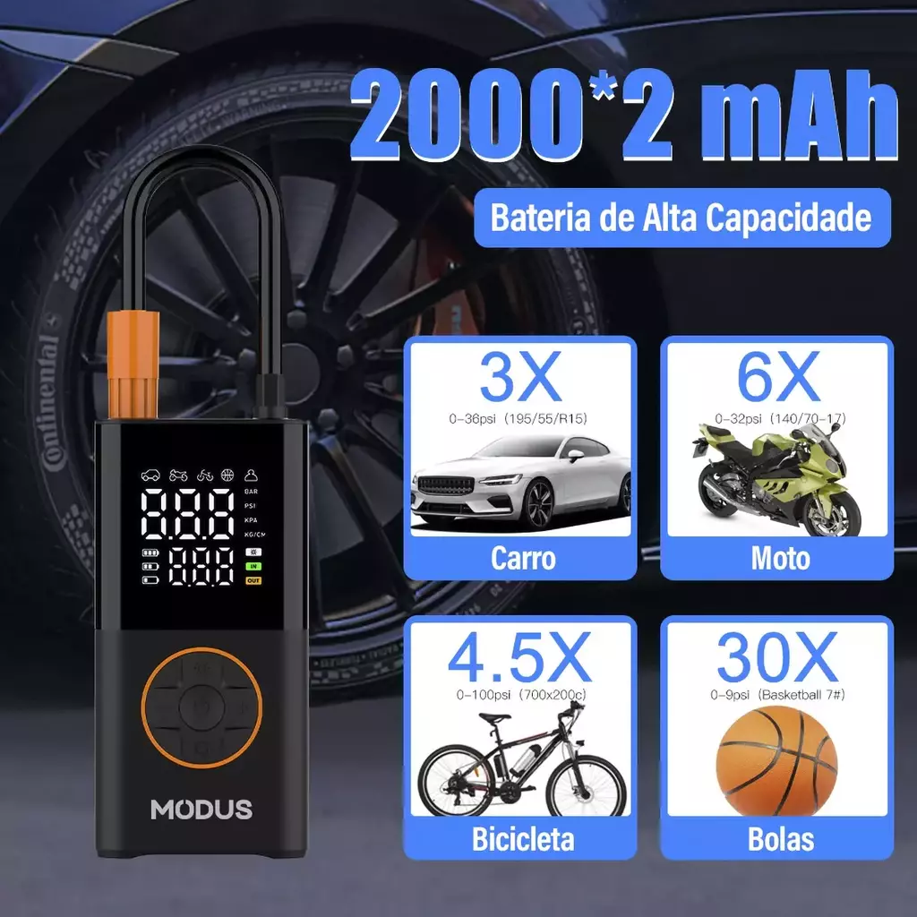 Suporta quatro modos de inflação, várias unidades de pressão substituíveis (PSI, BAR, KPA, kg/cm2), pode inflar pneus e bolas de carro/moto/bicicleta.
